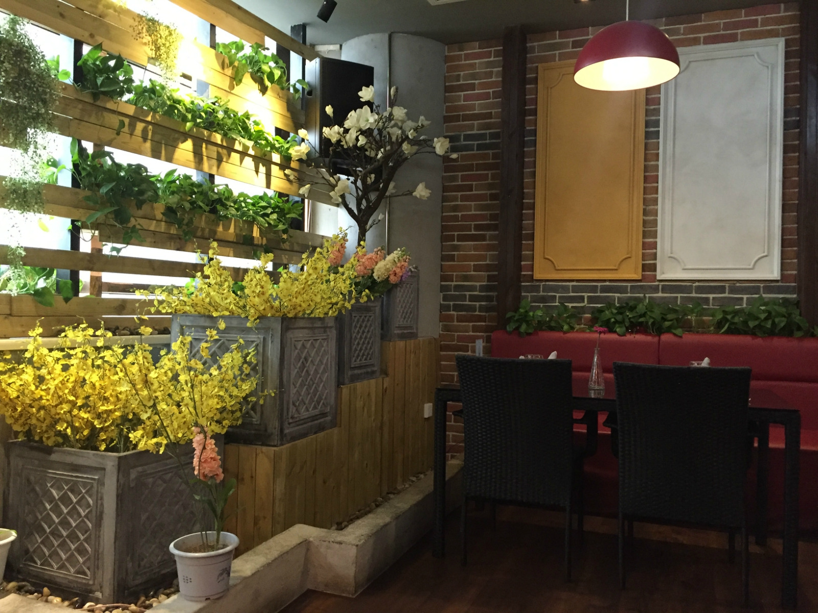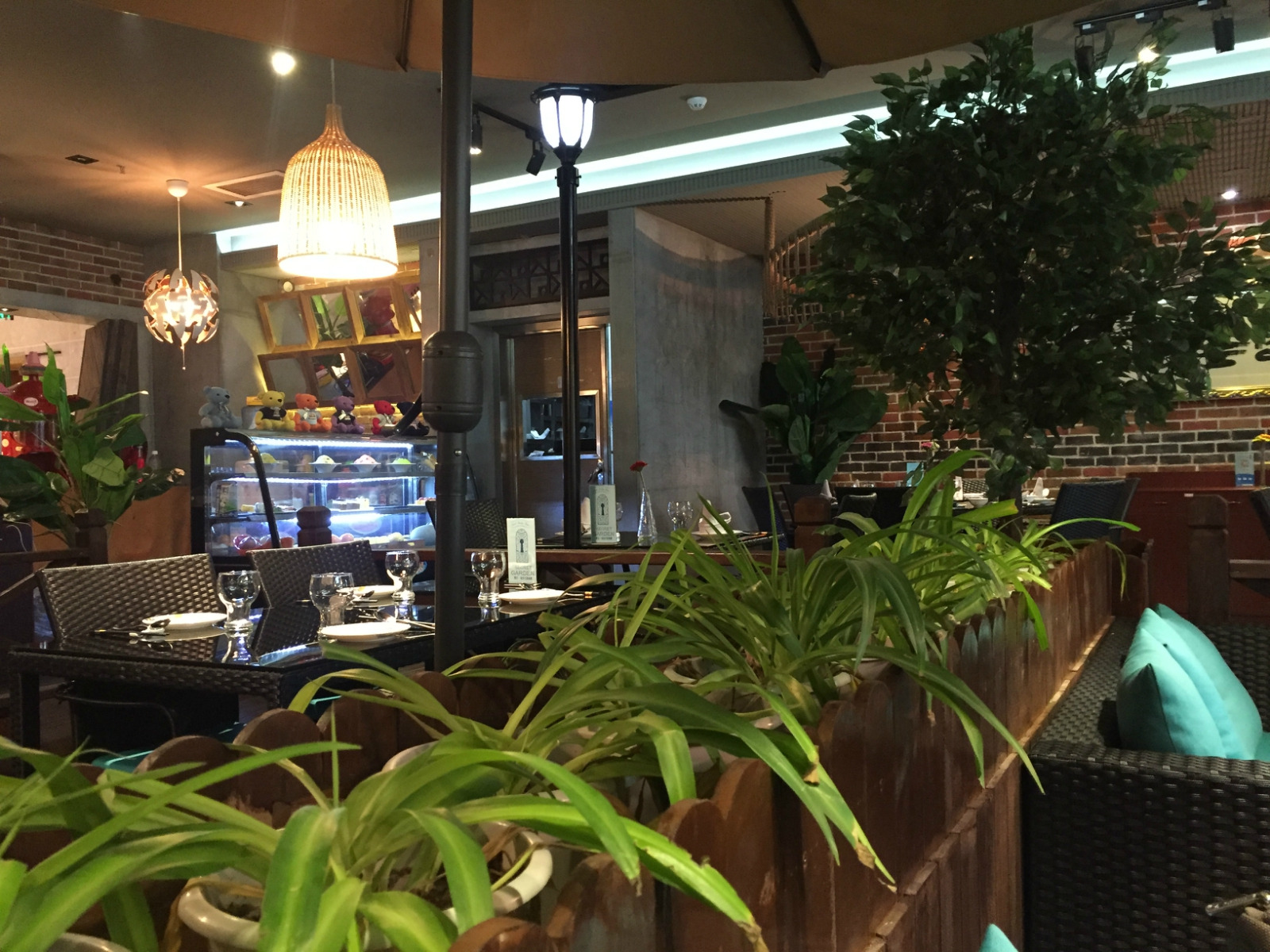 这家餐厅的环境还不错,跟名字一样,**花园餐厅。台位之间的私密性也还好,用各种仿真花划分这。