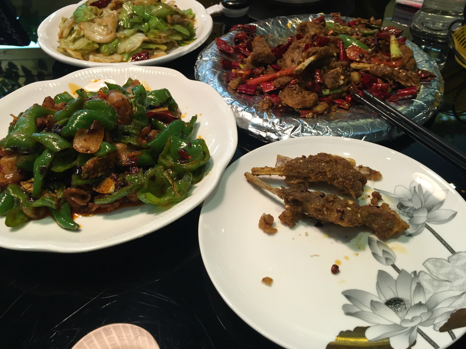 猪肉、牛肉、羊肉,哈哈,基本快全了。他们家的菜量很足的,味道呢,总体来说,还可以吧,两个人三个菜足以了。
