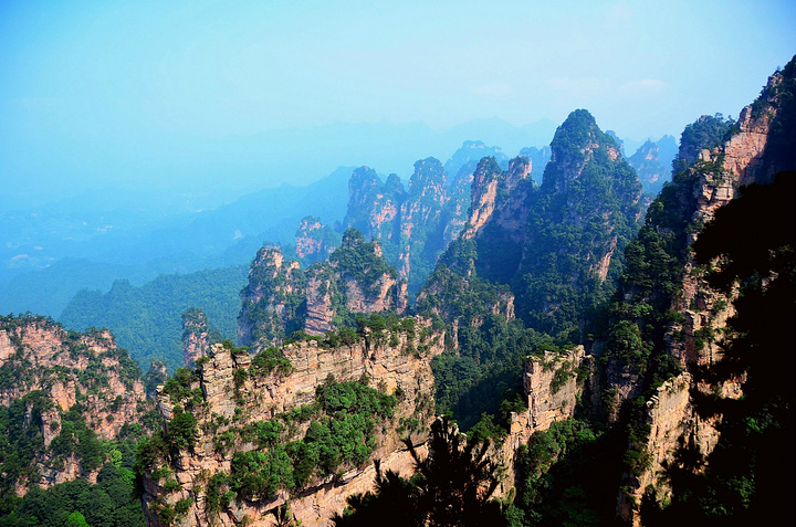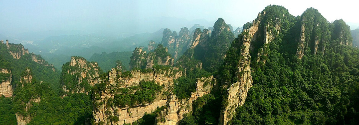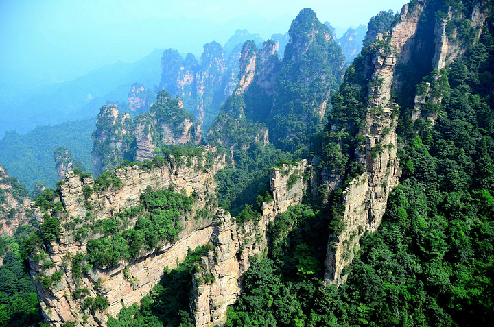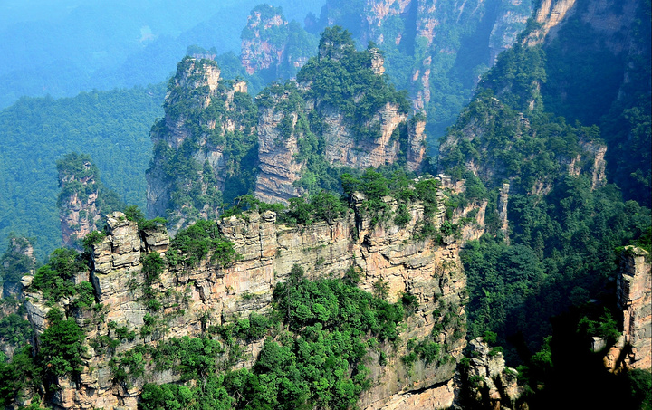险峰之上,常有无限风光。环视四周,远山近壑,壮观灵秀,满目空旷,开阔无比,奇峰异石,佳景天成。与张家界的其他景观不同,这里的石林排列有序,一排排,一片片,如战队,如列兵,极有气势。最为惊奇的是一层层山岩竟形成了巨大的天然石壁,如同残旧的城堡遗址,如断裂的长城废墟,真令人赞叹不已。