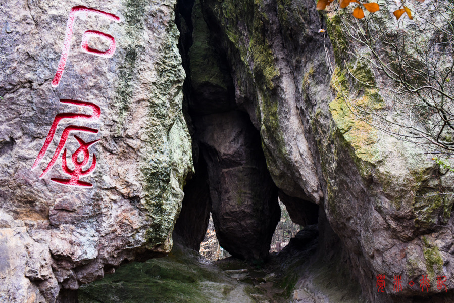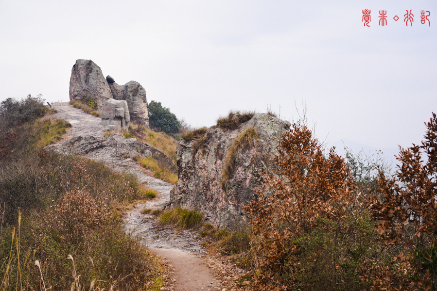 虽是寒冬,景致不如春秋,一行人在山间呼吸着富氧的空气,却怡然自得;在山脊上行走,视野很好,只是有雾,能隐隐约约的望见不远处的山石。奇峰峻岭、马仁石屋,有着江南不易见的奇险。