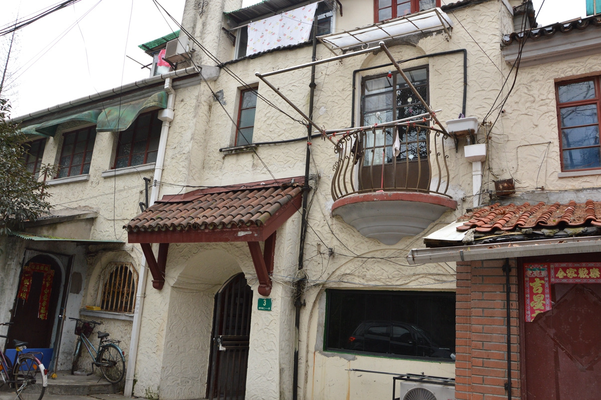 外国弄堂内的居民区,各色欧式建筑风格,现在生活气息非常浓厚