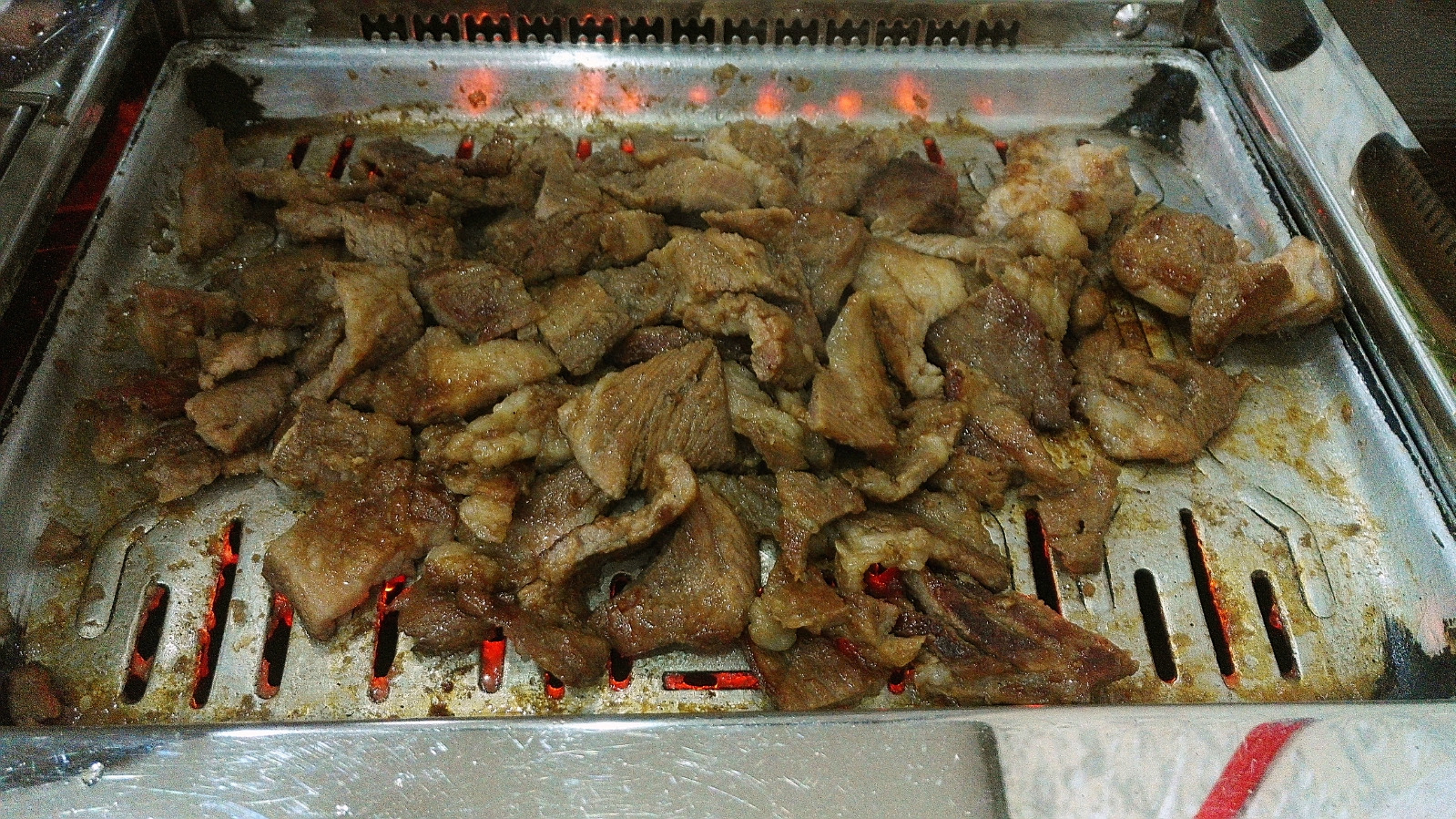 此次所点的菜有三种,分别是烤五花、炸什锦及牛肉拌饭