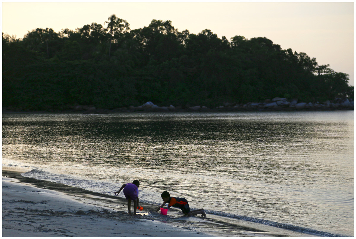 看看海边各种娱乐的人们,比如堆沙子的小孩