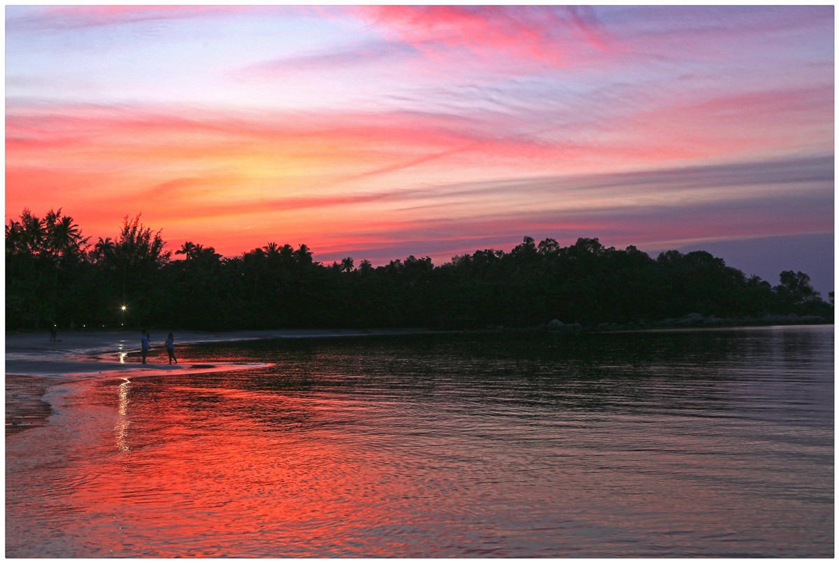 游完泳的某猪也过来了。于是就在沙滩上慢慢晃悠,带着她看看晚霞、捡捡珊瑚、挖挖螃蟹。