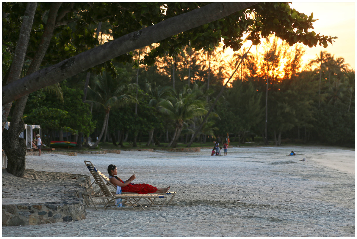 只是随遇而安,浪费时间,这种惬意才算是度假。嗯,还是专心看日落吧!某猪泡泳池,我就去海边拍照