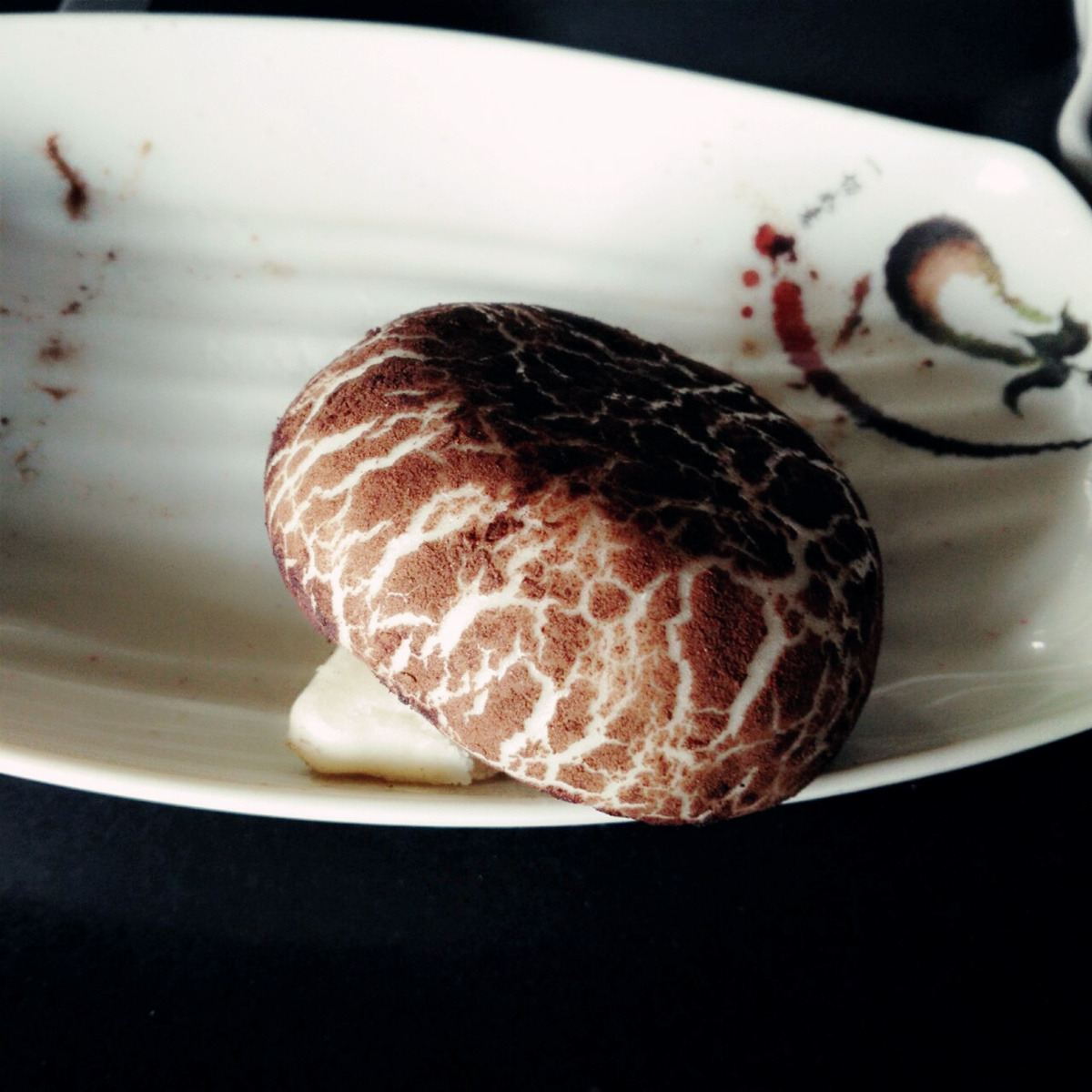 这货刚端上来的时候,我们都惊呆了,太特么逼真了,萌哭。拍照发朋友圈后,小伙伴们都吓了一跳,以为我要吃生蘑菇呢。蘑菇包长得非常像蘑菇,形状饱满,看着看着就很有食欲,却又不忍心咬它……外皮上是一层可可粉,不黏嗓子不黏牙。柄和伞的口感就像刚出炉的馒头,耐嚼,有劲,但又不失绵软,里面包的馅是白糖和花生,不会甜到发腻的粤式甜点。听说厨子是从澳门请来的,手艺确实非同一般。