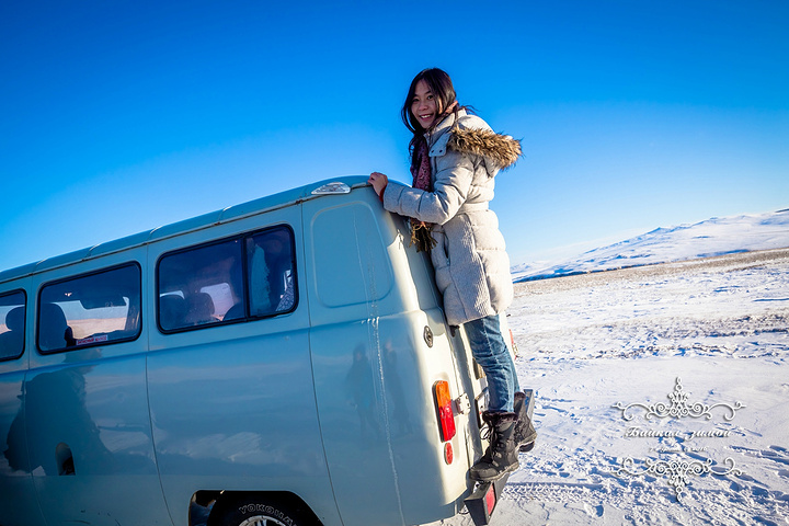 昨天去北线的时候,我们还在说,也许是还不够冷,湖面还没有彻底结冰,我们可能是看不到蓝冰了 但当车子驶向第二个停车点时,我们发现它是在冰上开的 湖面结冰了!纯洁的蓝冰! 结冰的湖面中,还有一个个的小气泡,像是欢呼雀跃的小精灵,在向外跑着