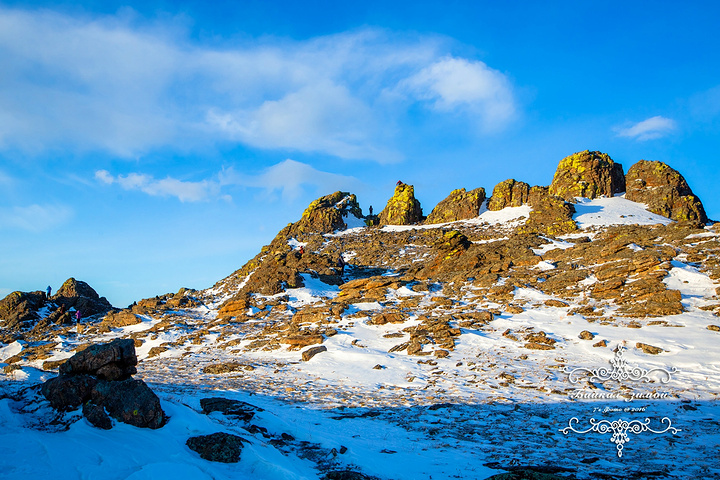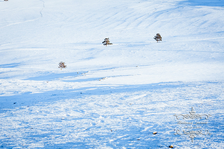 日出前的胡日尔村 新年的第一天因为阴霾的雪天而没有看到日出,那新年的第二天怎能错过 一路来到萨满岩石,天边已泛起了淡淡的粉色,胡日尔村显得更加安静且美好