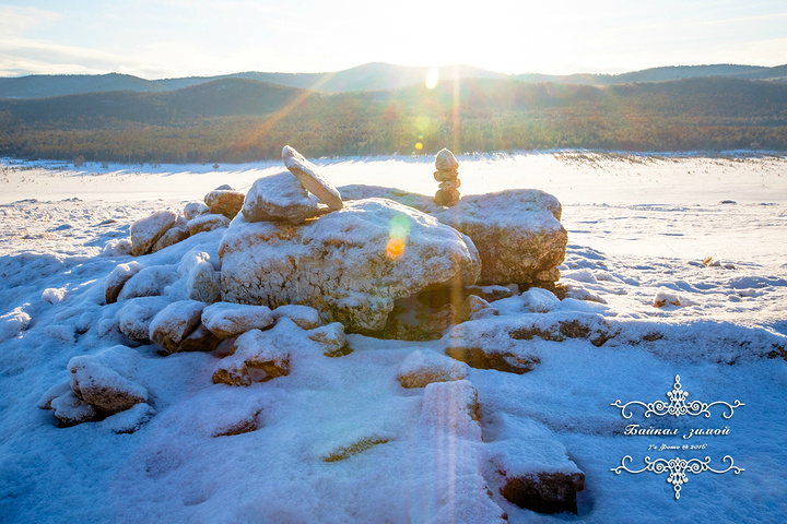 萨满岩石 著名的萨满岩石,又称作Shamanka,就是胡日尔镇旁边,是一块突出在湖边的巨大岩石 在萨满信仰中,这里是一座圣地,阿尔泰的神灵就寓居在岩石中,也是萨满信仰中最重要的圣地之一 萨满石旁边有一棵萨满树,上面缠满了五颜六色的经幡,寄托着人们美好的心愿