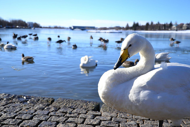 市中心Tjörnin湖,常年有许多天鹅、野鸭,它们一点也不怕人,那些在岸上摇摇摆摆走来走去的,你完全可以走到它们中间去。这里的天鹅,每只脚上都有一个编码,意味着对他们的保护。令人难以想象的事,这湖的位置对于雷克雅未克来说,就等于北京路对于广州来说。是绝对的中心区,居然可以有这么好的环境与生态,实在令人惊讶。