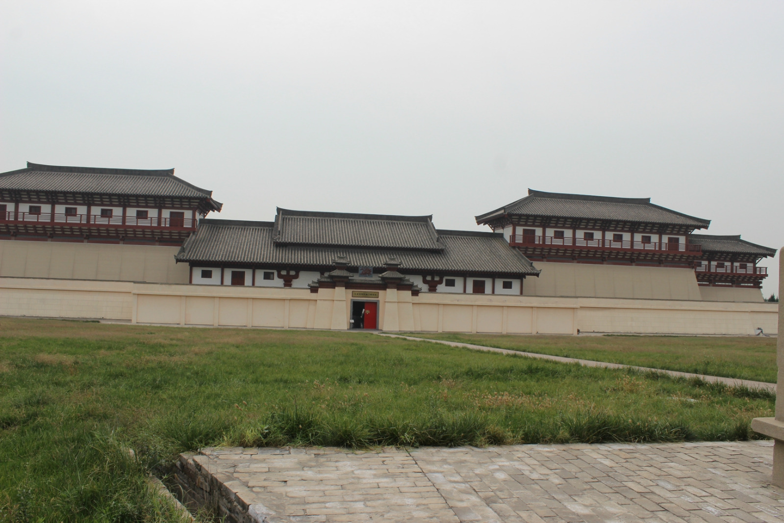 汉阳陵是汉景帝刘启及其皇后王氏的合葬陵园,右边高高的山其实就是汉景帝陵,左边那个是南门阙遗址保护展示厅,外观是仿汉建筑,既完整保护了遗址,也把汉代帝王才可享用的三出阙高台建筑雄伟高大的风貌展现出来。南门阙是目前发掘的时代最早,等级最高,规模最大,保存最好的三出阙遗址,是帝陵陵城四门中的南门,也叫朱雀门。