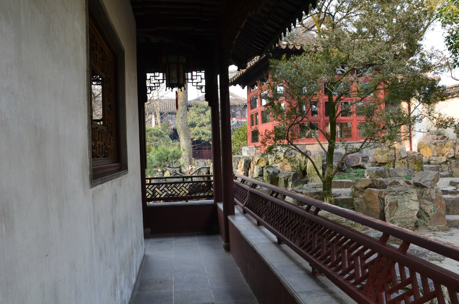 站在山水间可以观看前面的湖石假山和九曲桥还有一汪池水,这就是“山水间”名字的来由