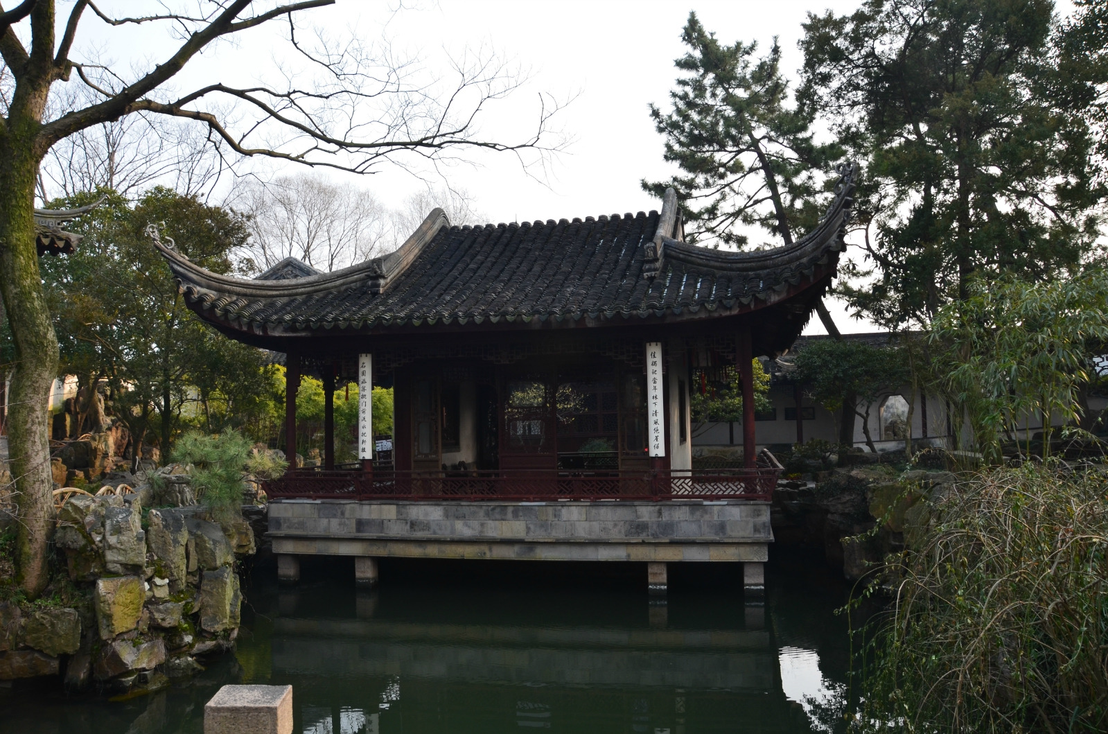 这个水榭四面通风,相传以前女主人曾在此处弹琴