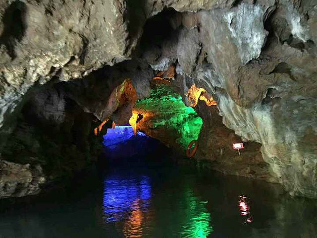 夏天避暑胜地,超赞。三个洞各有特色,灵泉洞手划船慢慢深入,清凉的泉水及空谷的回音,让你瞬间拥有一份宁静的内心;清风洞亦是名不虚传,刚到洞口就被习习凉风震撼,洞内不仅空间大,而且是一步一景,让你在透心凉的同时享受目不暇接的美景;霭云洞地处最高峰,洞内同样的凉快,龙宫倒影最为神奇,浅浅的一层水就让你看到两个完全相同又互相颠倒的世界。美中不足的是,景区入口处的几处水塘,应该是长时间没清理了,表面的枯枝落叶与浮藻感觉挺脏的,没有一进门就给人一个好印象。