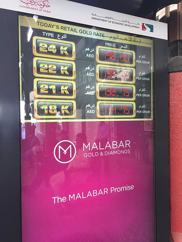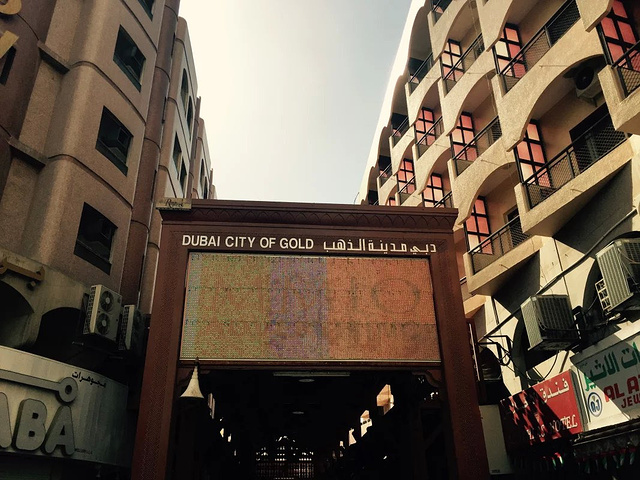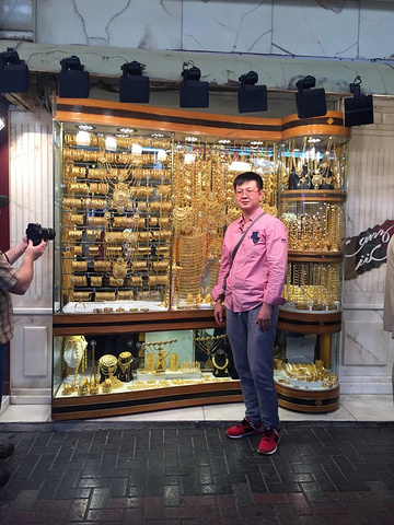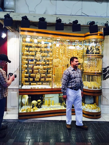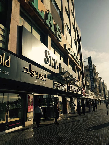 位于迪拜老城区的GoldSouk,这里是世界第三大的黄金交易集散地。 整个黄金街就真的只有一条街,全长不到一公里,但这里店面之多,出售黄金饰品种类之多,卖黄金像卖白菜一样,绝对令人瞠目结舌。 攻略:中国人格外的喜欢黄金所以来这边买的人也特别多,如果说黄金比中国到底便宜在哪里? 迪拜买黄金是很划算的,虽然不是说这里的价格会比国内便宜很多,但这里的做工和设计很棒,拼接的、镂花的、彩釉的、镶钻的、嵌宝石的,五花八门、琳琅满目,非常精美而且富有中东风情,比国内的款式更独特,种类更丰富。例如一条项链,按重量计算黄金的价格,再加上少量的设计加工费,并不算很贵。 迪拜黄金便宜? 黄金市场大部份的金饰都不是所谓的千足纯金,以22K的居多,18K和24K的也有,还有打磨成粉红、银白和浅黄的三色金。据了解,同等材质的黄金,在迪拜的价格要比在国内低20%以上。而且让消费者喜出望外的是,所有的饰品都是以克计价,设计费和工本费都基本免收,因此这里的黄金价格可以说是全球最低。