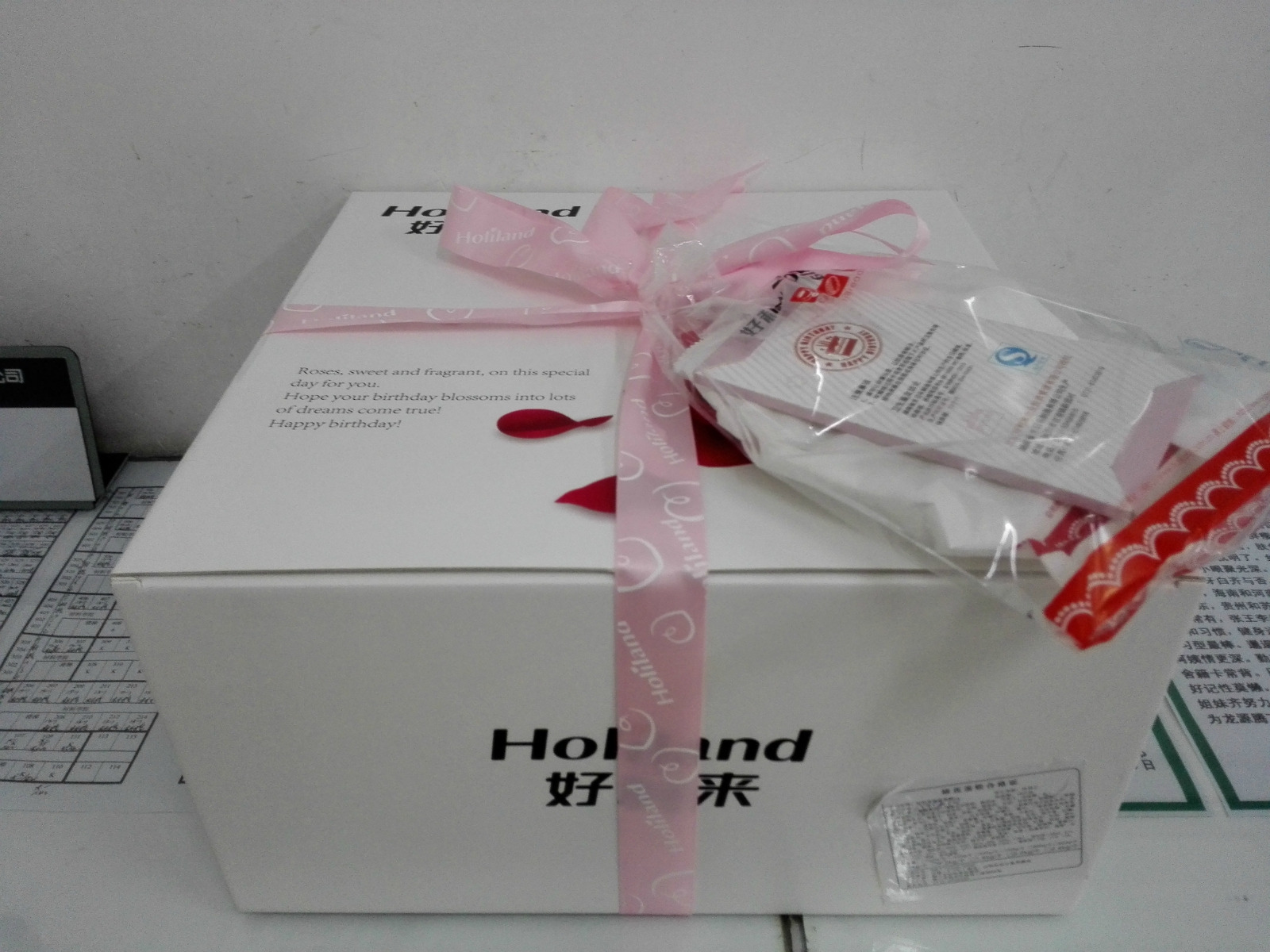 女朋友过生日在这里订的蛋糕,其实我走了好几家的蛋糕店,从小就一直在好利来吃蛋糕,可以说是自己是吃好利来蛋糕长大的。好利来蛋糕口感细腻,奶油不腻,真不是一般的蛋糕店能比的,但是价格有点昂贵,当是贵的真值!我走了鞍山好几家蛋糕店最后还是觉得这里比较靠谱。其实学校的附近就有这么一家蛋糕店,在兴隆,不过还是喜欢来这里,不知道为什么,价格应该都是一样的吧!店内的服务员都是年轻人,漂亮的姐姐和帅气的哥哥,态度也很好,不过等了一会才有人来询问我,当时店里比较忙,还是可以理解的!我提前一周订的蛋糕,因为怕时间临近想给女友个惊喜,于是就提前的有些早,但是美女服务员还是很热情的帮我下了单,订的是LOVE的蛋糕,30cm的,因为还要找几个朋友,我感觉小,但是这已经是最大的了。交了钱,拿着订单,就回去等信了,对了,他家的配送是让我最满意的,因为配送费才十块钱,超出一定的范围,而那几家竟然管我要打车钱,来回就是40,我蛋糕才200多,这不是坑人吗!所以选的好利来!到了送蛋糕日期的前两天,我又打电话提醒了一下。当天上午,一个穿红色T恤的小哥给我送到了公寓楼下,我忘记拿订单了,他也没刁难我,还特别嘱咐我,回去马上检查,因为路途比较远,如果上面有变形或者损坏,马上给他打电话,他送去最近的好利来蛋糕店为我修,我当时真的觉得没有选错!