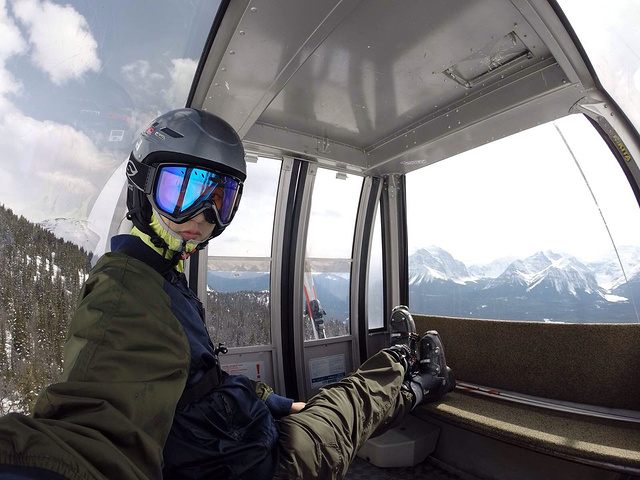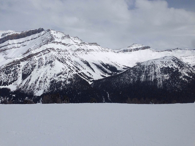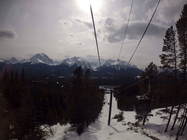 第三天跑去滑雪,lake louise雪场的风景应该是最好的,滑雪季节来班夫的人一定要去一趟,从山顶冲到半山腰,回头看被雪覆盖的峰顶和大神们的滑雪板画出的反光痕迹,看过的任何关于雪山的视频都比不上那一瞬间的震撼。不过国内能滑高级道的我只能窝在这边的green道上TAT