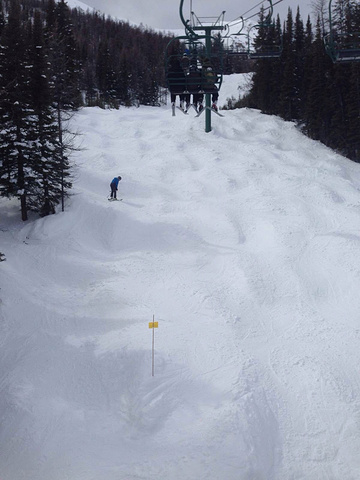 雪山上太容易迷路了,出发前记好路线能降低冲到double black上的几率(对一般人来说,上了double black等于不死不残都是奇迹),不过我还是迷路好几回,冲到红道上了,还差点进double black,幸好停得快。 最可怕的雪道是植被线以上的雪道,入眼全是雪,一片山只有几个木桩子插在那里,雪地眩晕的时候看什么都是一个距离,这时候的雪山最漂亮也最容易出事