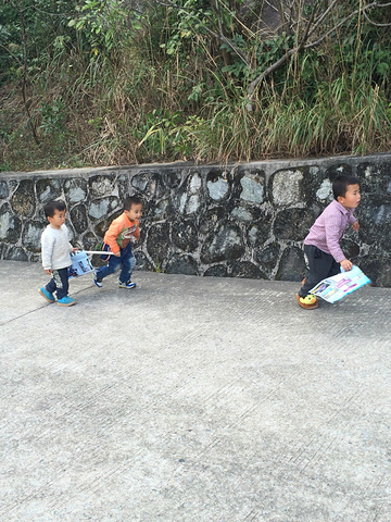 这三个小屁孩说:今天好厉害哦,走得最远啦!