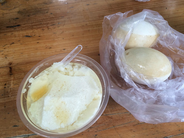 鹅蛋是咸蛋来的,很好吃,5元一个。悄悄告诉你,上得越高,东西就越贵!