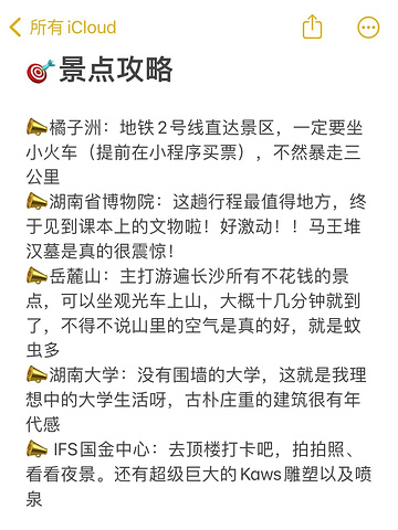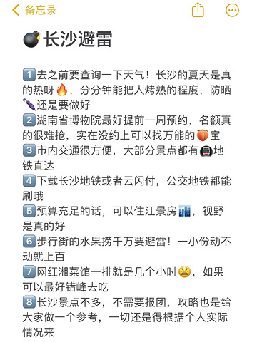 第一次去长沙不知道怎么玩❓ 热门景点超多怎么选❓ 这份长沙三天两夜🔥攻略整理好了 住宿、美食、景点、出行攻略、游玩建议等等超实用…… 希望能帮到所有要来长沙旅游的姐妹们~👭 - ⚠【避坑清单】 ‼步行街的水果捞千万要避雷!一小份动不动就上百 ‼湖南省博物院建议提前一周预约,这个景点比较火热 ‼市内交通很方便,大部分景点都有🚇地铁直达 ‼预算充足的话,可以住江景房🏙,视野是真的好 ‼岳麓山的索道在改造维修已经关闭了,切记不要跑空 ‼网红湘菜馆一排就是几个小时😫,如果可以最好错峰去吃 ‼长沙大部分景点都是免费的,只要提前预约就可以了。 - 💫【景点打卡】 ❤橘子洲:地铁2号线直达景区,一定要坐小火车(提前在小程序买票) ,不然暴走三公里 ❤湖南省博物院:这趟行程最值得地方,终于见到课本上的文物啦!好激动!!马王堆汉墓是真的很震惊! ❤岳麓山:主打游遍长沙所有不花钱的景点,可以坐观光车上山,大概十几分钟就到了,不得不说山里的空气是真的好,就是蚊虫多 ❤湖南大学:没有围墙的大学,这就是我理想中的大学生活呀,古朴庄重的建筑很有年代感 ❤IFS国金中心: 去顶楼打卡吧,拍拍照看看夜景。还有超级巨大的 Kaws雕塑。 - ✅【旅游路线】 ☑️DAY1:国金中心→黄兴步行街→太平老街→丰盈西里→杜甫江阁 ☑️DAY2:岳麓山→岳麓书院→爱晚亭→后湖→四方坪夜市 ☑️DAY3:橘子洲→长沙文和友→湖南博物院→古开福寺 - 🍀【美食推荐】 🔸茶颜悦色:来长沙旅游,必少不了喝茶颜悦色,找小区、超市附近那种不需要排队的店,我最爱声声乌龙 🔸笨萝卜:谁能懂普普通通的空心菜,让我吃出了妈妈的味道,直接哭死 🔸小斑马海鲜:他们家海鲜品质还不错,都是现杀的,个头也大,属于那种湘式做法第一次吃还蛮惊艳的 🔸金记糖油坨坨:外壳是脆脆的红糖酥皮的口感,甜而不腻,里面是糯糯的粒耙的口感 🔸聚味瞿记:非常推荐!招牌卤虾我可以吃无数份,我们当时一边排队一边带外卖,就这么吃到啦 🔸臭名远扬臭豆腐: 他家臭豆腐是白色的没有想象中的臭,表皮特别酥脆,里面的豆腐超级软嫩。