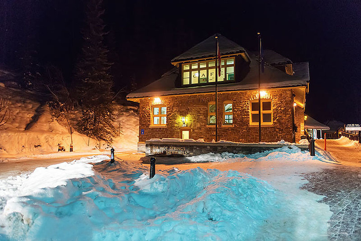 班夫上温泉 Banff Upper Hot Springs 晚餐后的下一项目就是泡温泉!当时征求大家的意见,是去班芙上温泉泡泡,还是回酒店的温泉去泡泡,大家一致决定去上温泉! 班夫另外一个举世闻名的特色就是温泉啦!这还得追溯到1883年,因为修建铁路在班夫发现了温泉,也间接促成了班夫国家公园的建立。 该温泉距离银龙餐厅很近,上下好几层,关键温泉是户外露天的!屋外滴水成冰,温泉池子上却不断有热浪腾腾冉起。从温暖的室内换好泳衣,走到零下n度的室外,貌似在热气蒸发中不算很冷,泡进温泉里当然更爽。 常年保持在38度的硫磺山水源,自然富含丰富的矿物质,对身体有多少好处不得而知,但是消除奔波一天的疲乏很有效果。 班夫上温泉是唯一对公众开放的温泉,成人票价7.3加币,租用柜子需要1加的硬币,还可以租用复古泳衣1.9加币,价格非常公道。