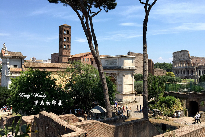从斗兽场和ink' href='/poi/4339182' data-beacon='text_link'>君士坦丁凯旋门出来,笔直往南走不到五六分钟就到了ink' href='/poi/4338731' data-beacon='text_link'>帕拉蒂尼山(Palatini)入口。这里是古罗马城的起源之地,也曾是古罗马城最繁华的地方。传说公元前8世纪中叶,母狼抚养大的罗穆卢斯(Romulus)在这里杀死自己的兄弟瑞摩斯(Remus),建立了罗马城。 ink' href='/poi/4339275' data-beacon='text_link'>Palatino丘是以前罗马贵族们修建住宅的地方。后来经过千年的毁灭,基本什么都不剩下了。其实就可以把palatino丘当成一个大公园,先走一段土路,欣赏一下小花儿,然后爬到palatino的观景台俯瞰罗马景色,最后走到罗马废墟(Foro Roman)参观。这里可以俯瞰周边的斗兽场、威尼斯广场和古罗马遗址,视野还是不错的。