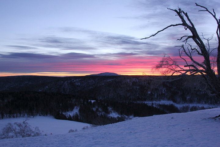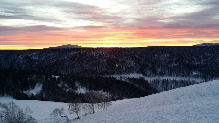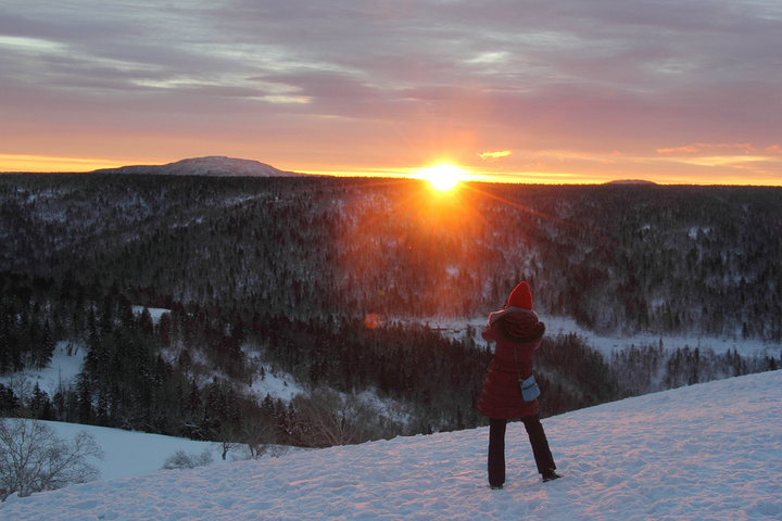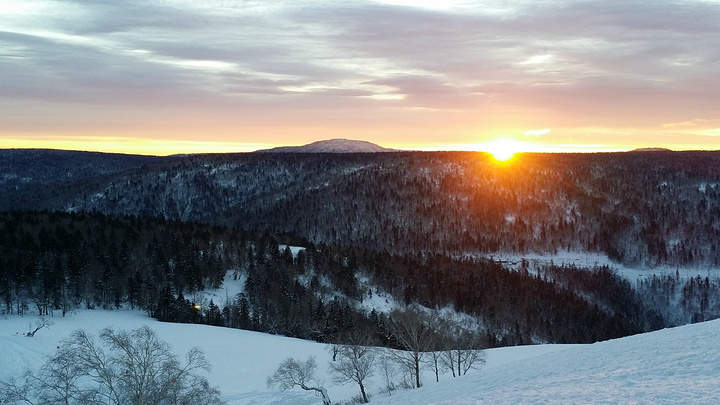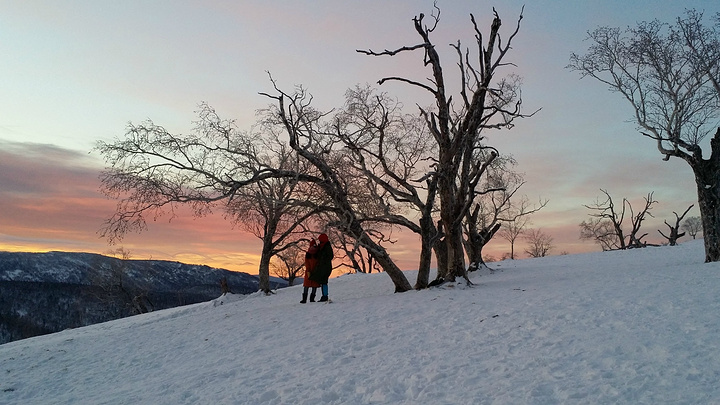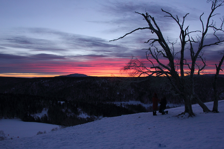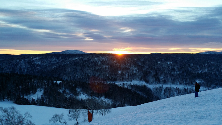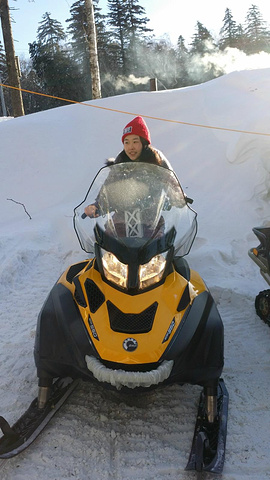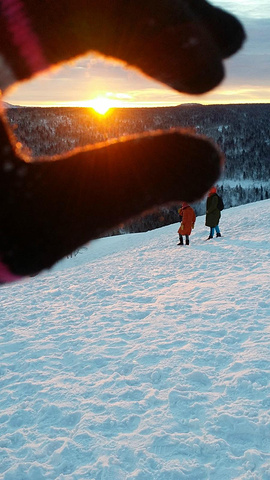第二天早上趁着天黑起床,6点准时出发,去秃顶山看日出咯~表示这是这辈子第一次看日出,有点小紧张加期待加小兴奋(你们原谅我这辈子没看过日出)。6点半到达目的地之后,骑着雪上摩托一路飞奔上山...一路上那个风大的,把我人都快吹走了(啊啊啊啊啊啊但是好爽啊~~)