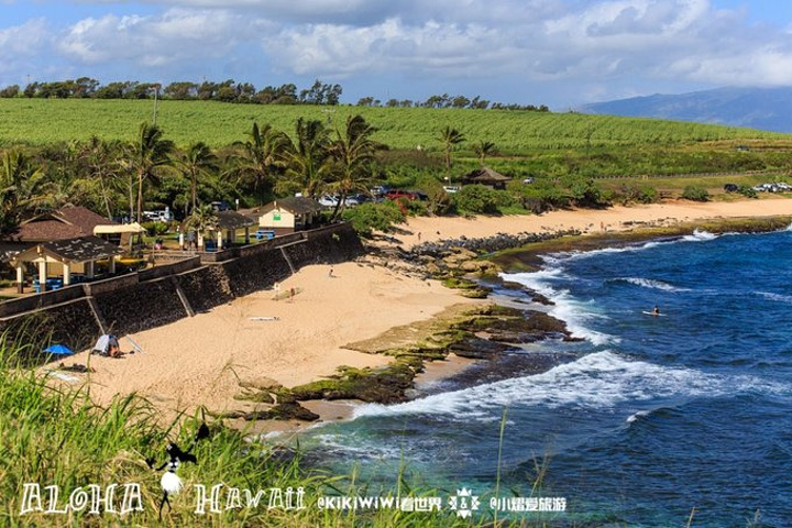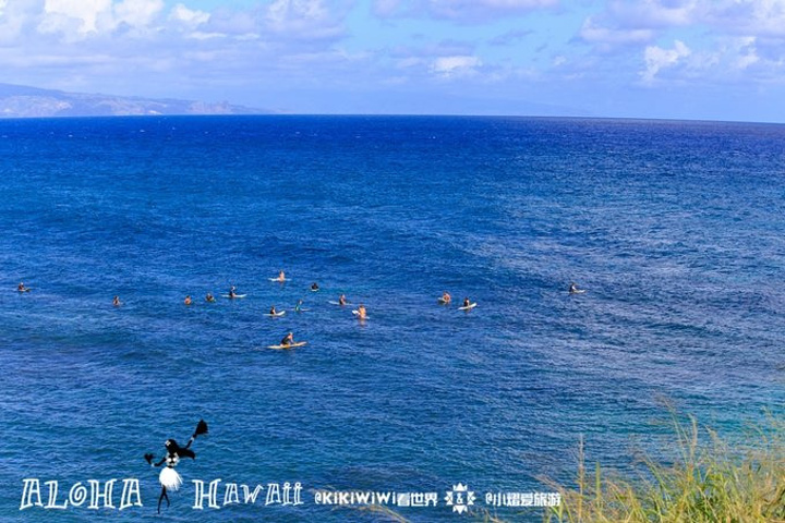 备注:Heavenly Hana Adventure Tour全程酒店接送,并包含一顿午餐,但环岛游全程游览景点较偏,很少能遇到购物点和小卖部,建议自备水和零食(特别是水,毕竟夏威夷的天还是很热的),这样路上就不会无聊啦~!另外自备垃圾袋,下车自行将垃圾带走,保持车内整洁干净。 启程后第一站,我们来到的是霍欧津帕海滩(Hookipa),Hookipa位于茂宜岛东北部海岬,风大浪高,是茂宜岛一处适合冲浪的海滩,听说也是世界风帆冲浪的起源地。