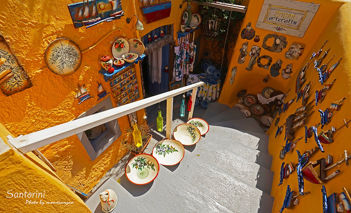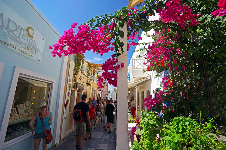 走到oia一条狭窄的商业街,两边有很多非常有特色的首饰店,享受淘货的乐趣