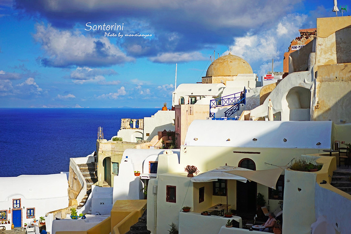 oia镇中心游人如织,圣岛的淡旺季很分明。6-9月是旺季,10月到次年5月是淡季,我查了查10月1日的酒店,比起9月份的价格便宜一大半。不过我后来看朋友十一到圣岛,天气真是不太好了。所以淡旺季分明的旅行地,旅行时间的选择还是很重要的,毕竟不是有大把时间和金钱一个地方去几次,还是让自己少一点拼人品的机会。
