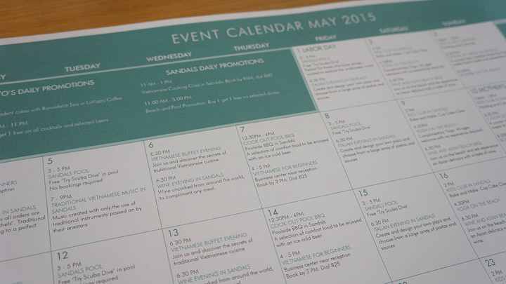 桌上放了日程表,提醒住客每天都有什么活动,总之,在这耗上好几天也不会觉得无聊的。