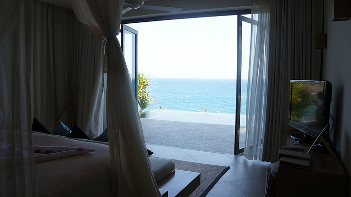 进入房间的时候,窗帘还是紧紧合上的,一把拉带眼前是无比宽敞的海景,虽说从小在海滨城市长大,海景房也住过,但还是忍不住大呼小叫的,唯独此时才对得起面朝大海春暖花开的惬意啊,太~爽~了~