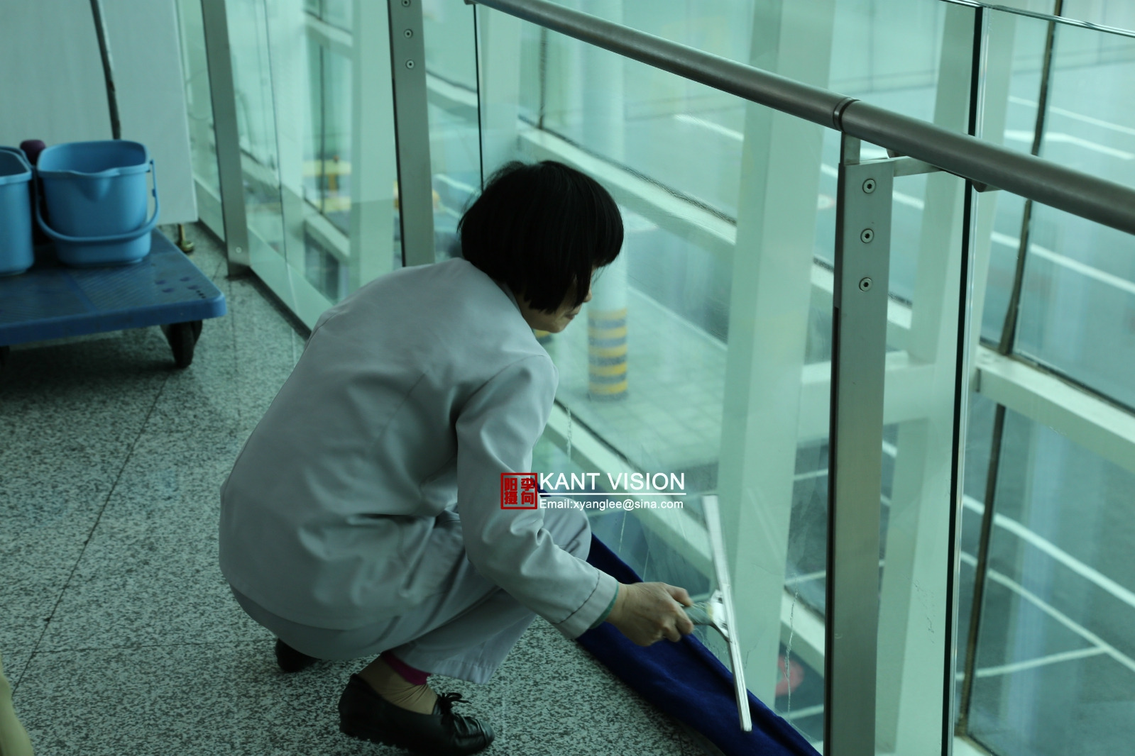 在机场等人时,觉得这个电梯从这个角度看起来,也很不错,举起相机来一张。看见机场的清洁阿姨了,来一张