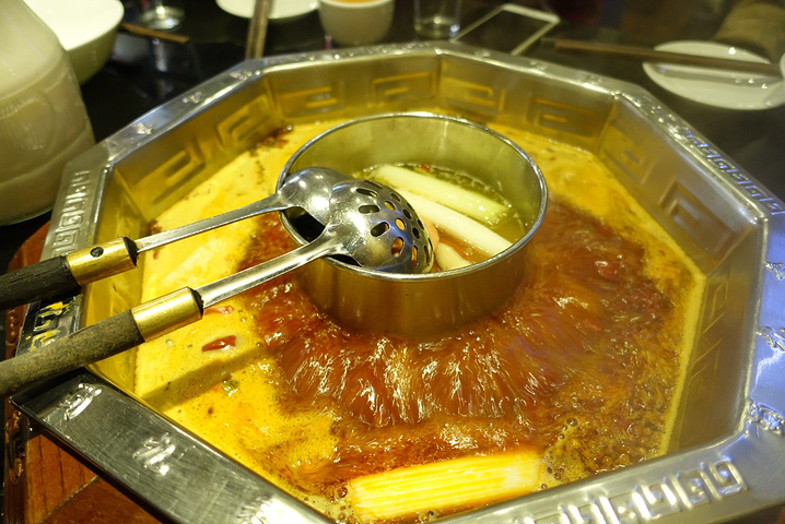 之前在北京喜欢吃重庆四川的火锅,吃完都是肚子辣的不要不要的,但是四川这得火锅只在嘴里辣,进了肚子是舒服的,不仅辣,而且特别香,刚刚捞出来的肉裹着红油,放进香油里降降温,抓紧塞进嘴里,温热的红油香油肉香顿时侵占了你的舌头,OMG!