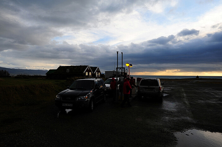 斯奈山国家公园的露天加油站,最后一次加油,准备返回雷市和机场,由于许多加油站都只有冰岛语,于是我们就连猜带蒙地,好不容易加上后,就采用连续3部车一次加油的策略,后来发现,冰岛的加油站一次都只能最多加油ISK25,000,再多就不给油了。