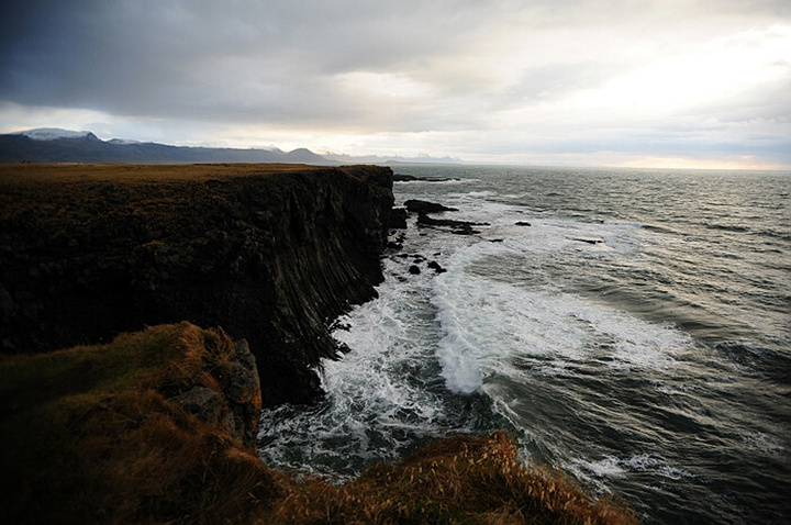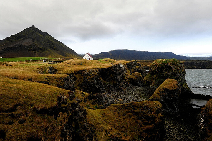 国家公园最精彩的二站Hellnar和Amarstapi Cliff和Búdir(教堂+黑沙滩+玄武石崖),本来天气预报是晴天,但实际过来却是乌云密布,疾风暴雨地,我们也只好在此匆匆而过。斯奈山的断崖式赫赫有名的。
