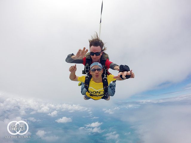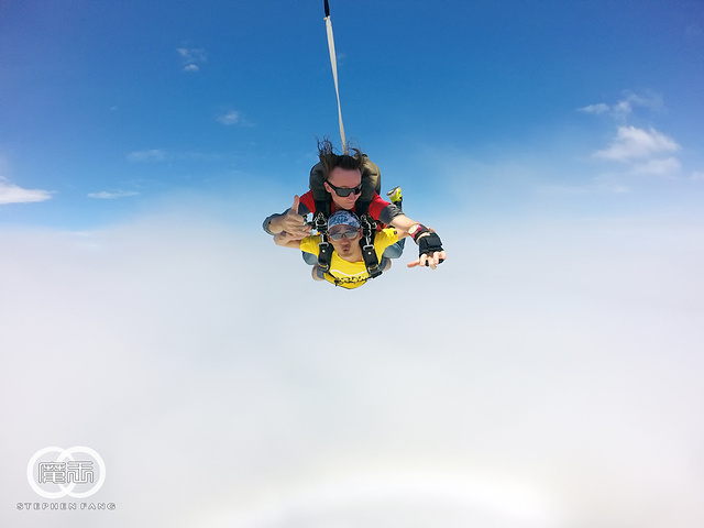 如果你要问我为什么敢跳,会不会害怕,我心里只有期待与兴奋,因为这是我一直以来非常想体验的事,也可以说是一桩心愿~ 整个过程最棒的部分是从飞机上跳出来的60秒自由落体。 跳出飞机那一刻我的脑中完全是空白的,没两秒我才发现我真的在跳伞了,自由落体那六十秒的感觉我无法形容,整个人不断的往下坠,直到Dave拉出主伞,我才觉得我回到了现实生活中。 顺利着陆后,Dave问我感觉如何,我告诉他,这是我这辈子做过最过瘾的一件事 我还真想再跳一次。