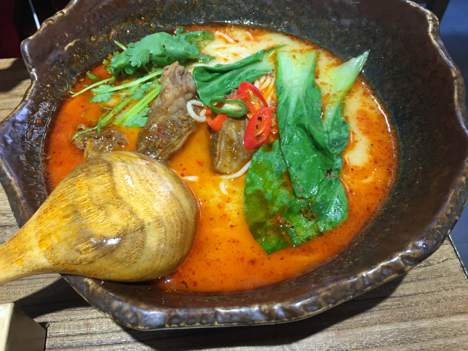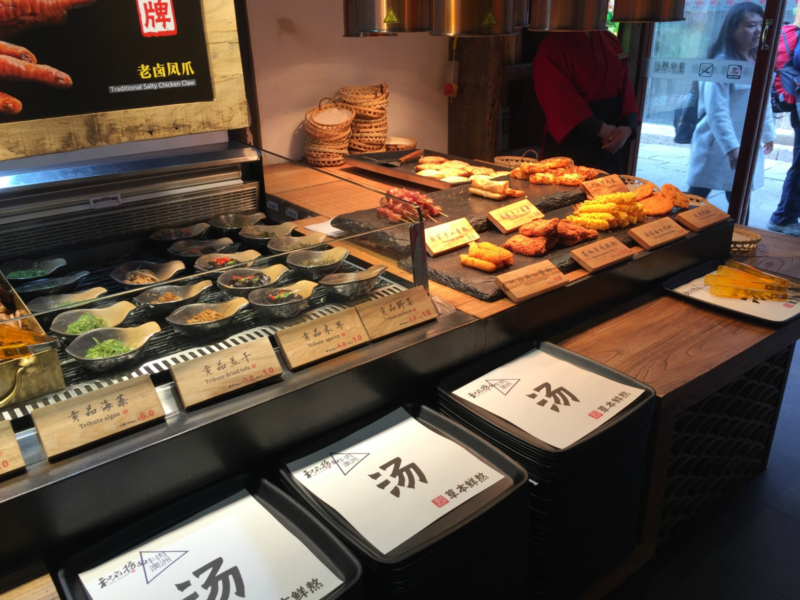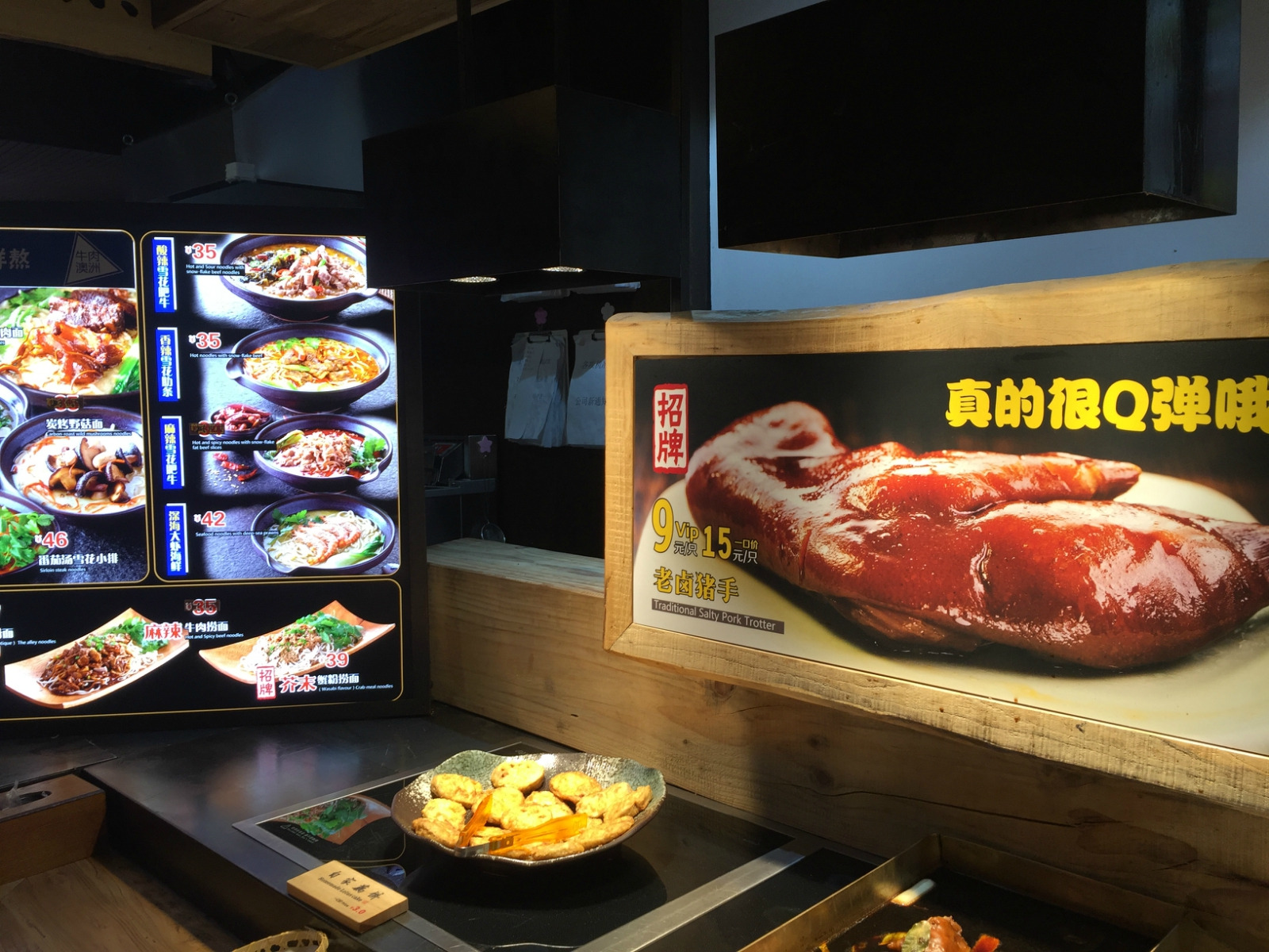 比较特别的一家面馆,进门就看见“在书房里捞面”,但也没细究“书房”在哪。可以自选小食,跟食堂里一样,最后到收银台付钱,点了芝士鸡排和鸡脚,鸡脚味道不错,跟苏州常见的煮的很烂的不同,这是冰镇过的很有劲道的味道。鸡排则一般了,完全木有芝士的感觉。两样一共13元。