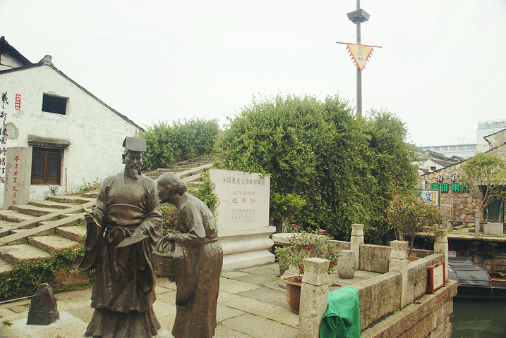 两樽铜像形象地演绎了题扇桥的由来