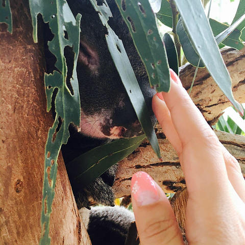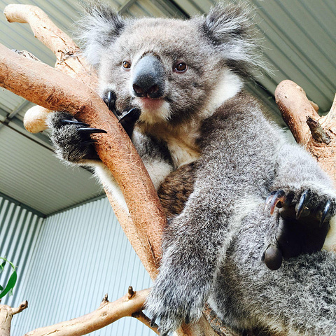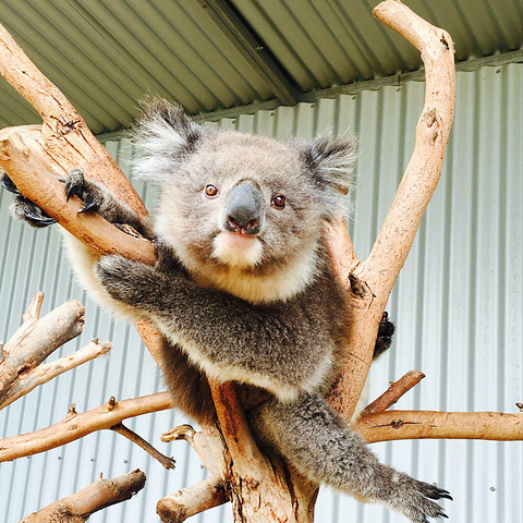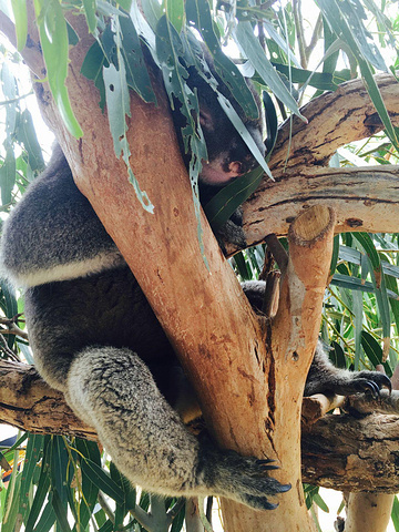 因为之前在tasmania动物园看到过活泼考拉跳下树 所以真的有些害怕他飞到我身上..看我后退 它也就退回树上躺好了 看着我..你是老板吗!