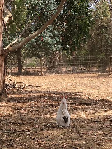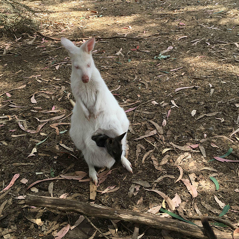 和Tasmania Bonorong动物园一样,都是当地保护受伤动物的动物园。 在这里 我看到了 本次澳洲行 看到的第一只白袋鼠。听说白袋鼠非常珍稀,而我看到的,更是白袋鼠妈妈,袋子里装着黑袋鼠宝宝。 太!幸!运!