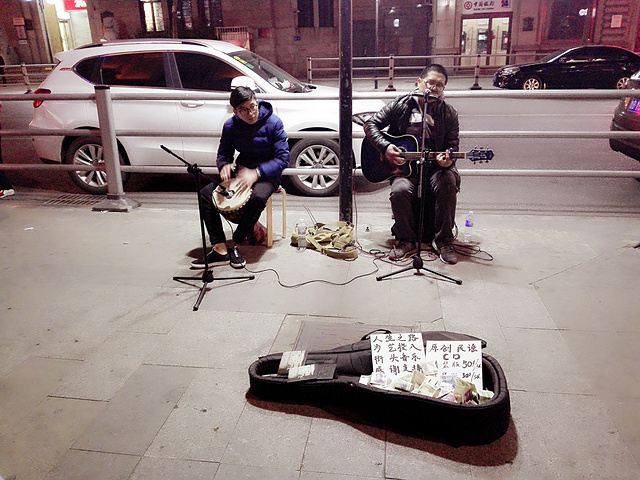 超赞的歌手~唱歌很好听,平时是在附近的酒吧驻唱的,还有自己的唱片~路过的人很多停下脚步,来往的车里也有很多人探出头来。