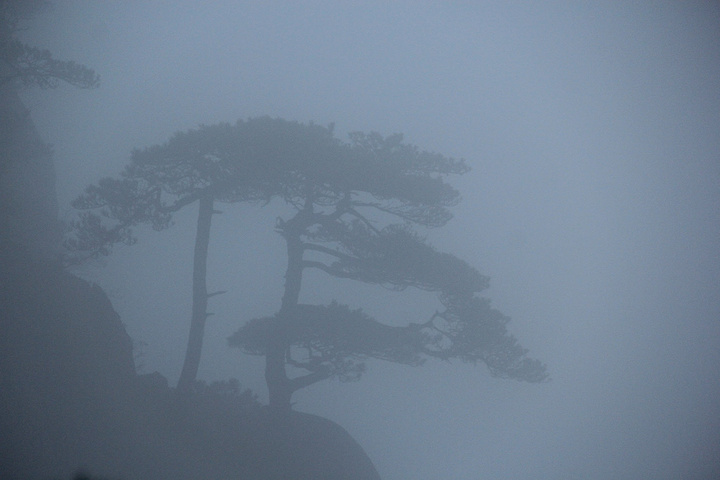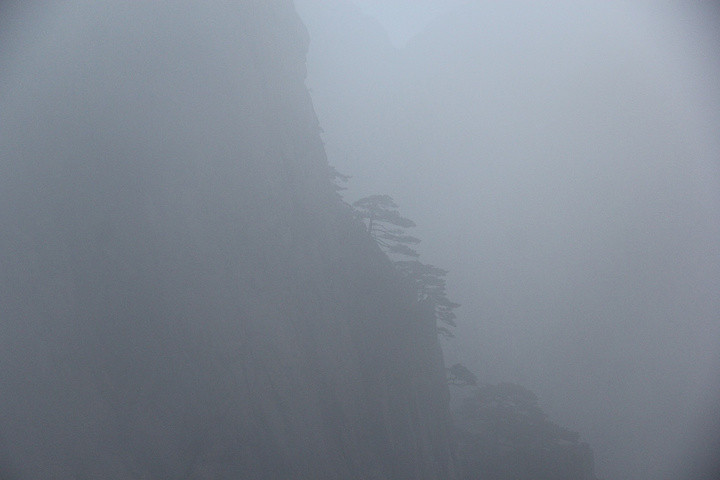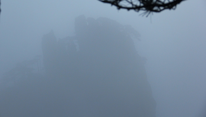挨着冻,等了一个小时左右,能露出太阳的时候,日头已到半山腰了,黄山日出等着没看到了,只能寄希望于云海! 这个时候离冻僵也差不了多少了,赶紧移步动起来,朝白鹅岭方向前进