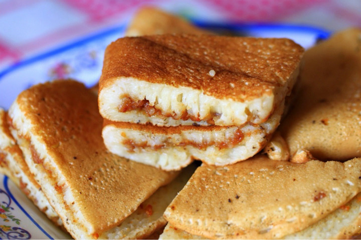 口感很好,性价比高,的确是古早味。热乎的白糖花生夹馅满满非常烫嘴,外皮蓬松有些韧。很小的一张桌子,都算不上摊位。但是人很多,一块五一快,热乎乎的!感觉是发面做的有点粘性的糕饼,里面有一层甜甜的味道很浓的花生酱作为馅料一块,挺实惠的~卖完就收摊!