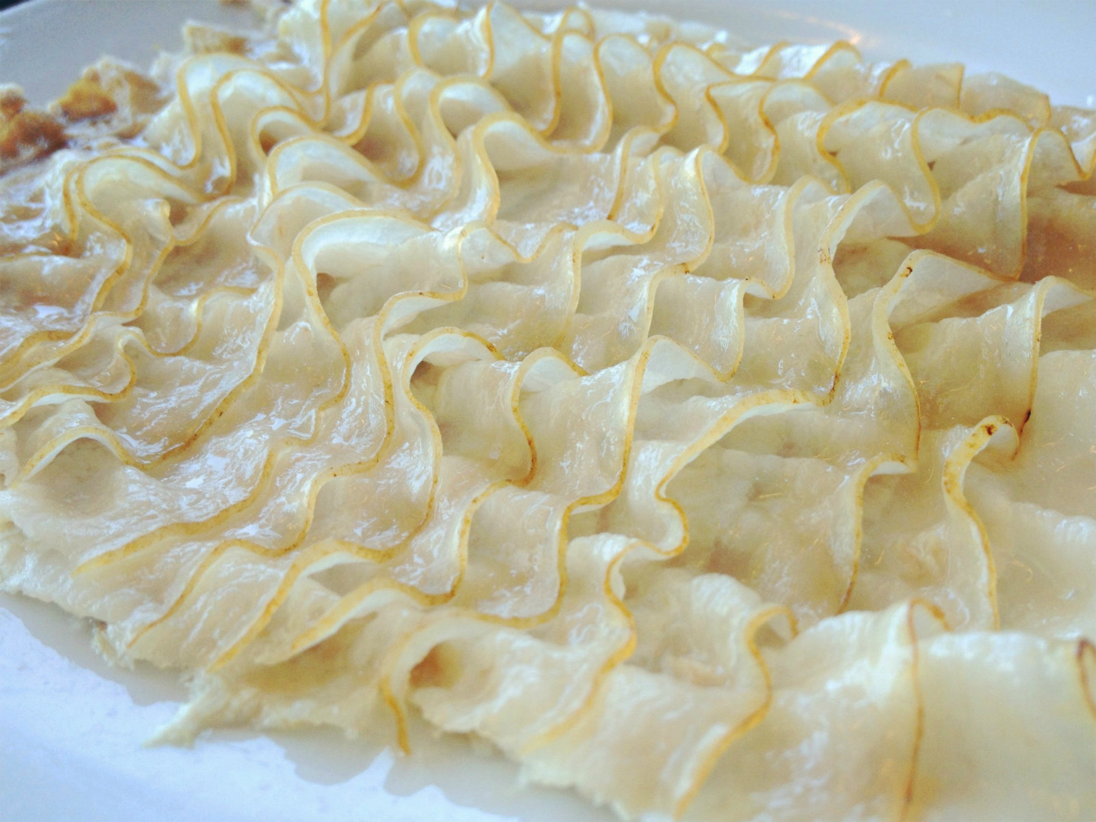 白肉晶莹剔透,薄如蝉翼,肥而不腻,Q弹无比,十分爽口。
