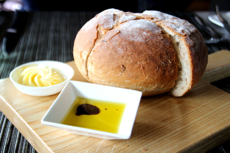 餐前面包 个头很大一只 韧性不错 配了油醋和黄油。黄油蛮好吃的,面包现烤,表皮很酥,
