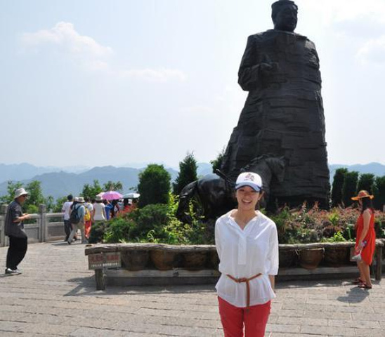 在贺龙公园贺龙雕像前合影一张,哇哈哈