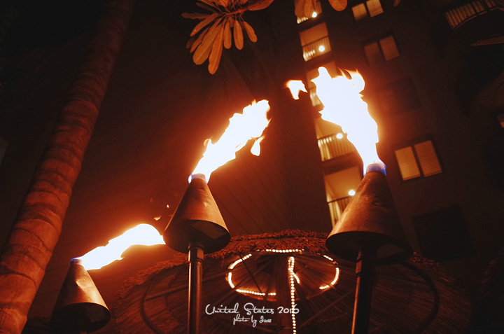 夏威夷到了晚上,各家酒店门口都会点起火把。