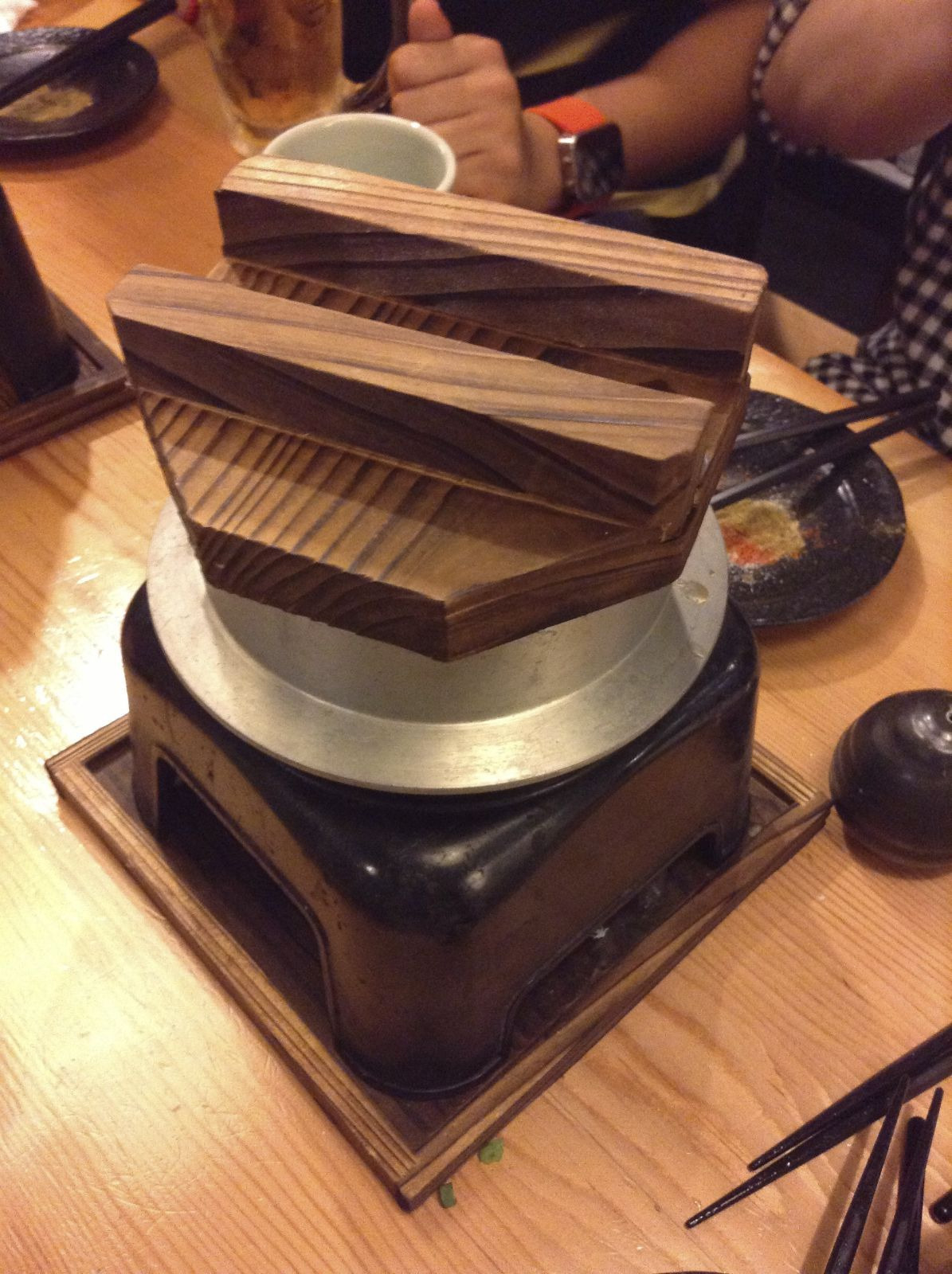 斧烧,底下有酒精灯,烧完了就熟了